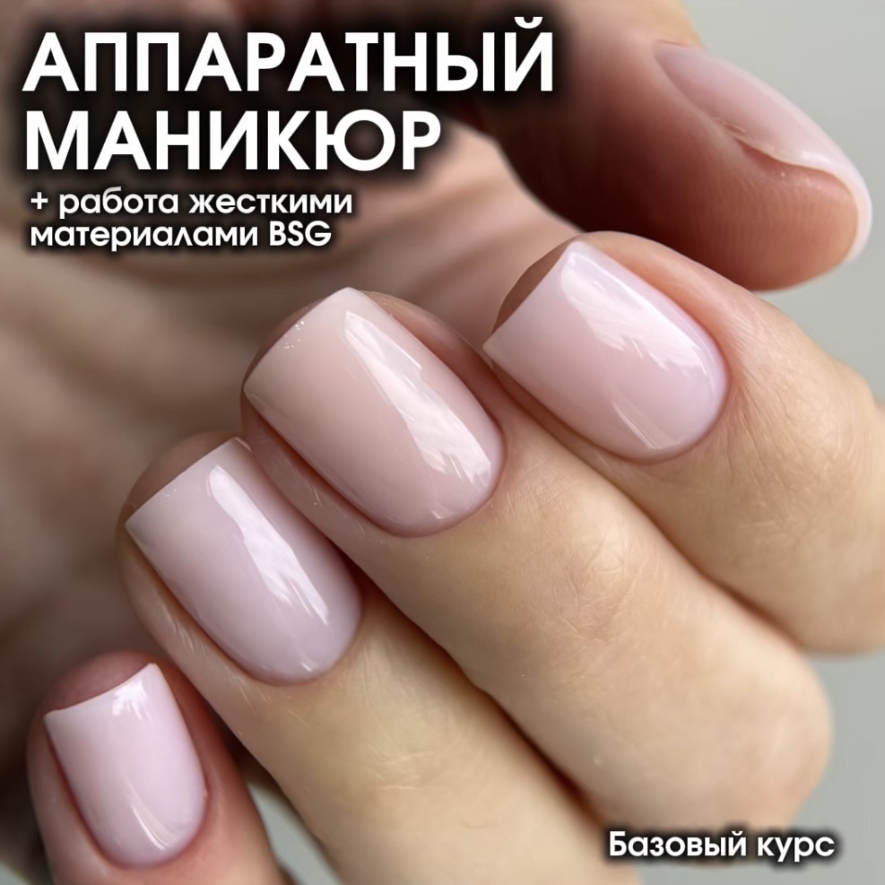 Практика: Одна модель в 14:00 - Аппаратный маникюр, покрытие материалами BSG с выравниванием/укреплением ногтевой пластины.